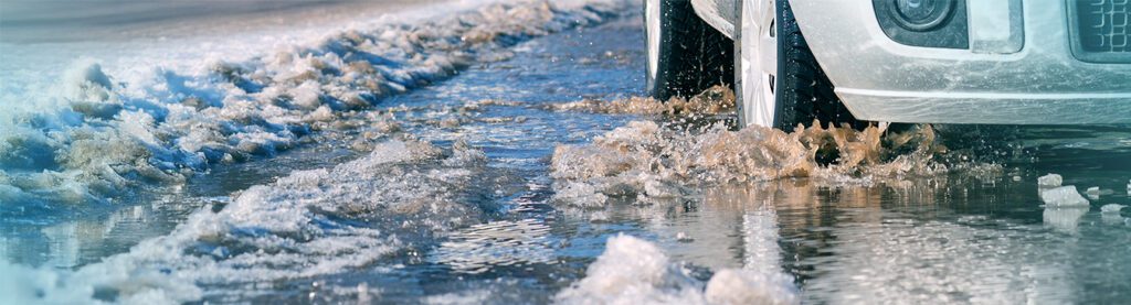 Une flaque d’eau apparemment inoffensive peut cacher un énorme nid-de-poule, constituant un danger pour votre véhicule et votre sécurité.