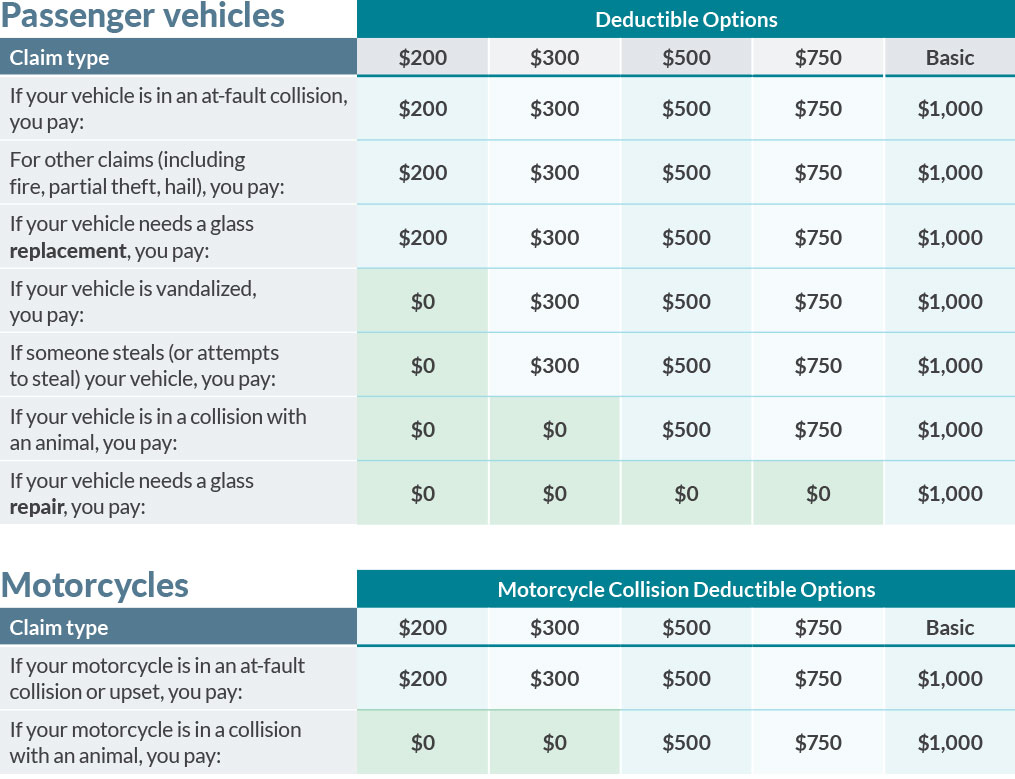For drivers wanting minimum expense in the case of an Autopac claim, lower deductible levels of $750, $500, $300 and $200 are available.